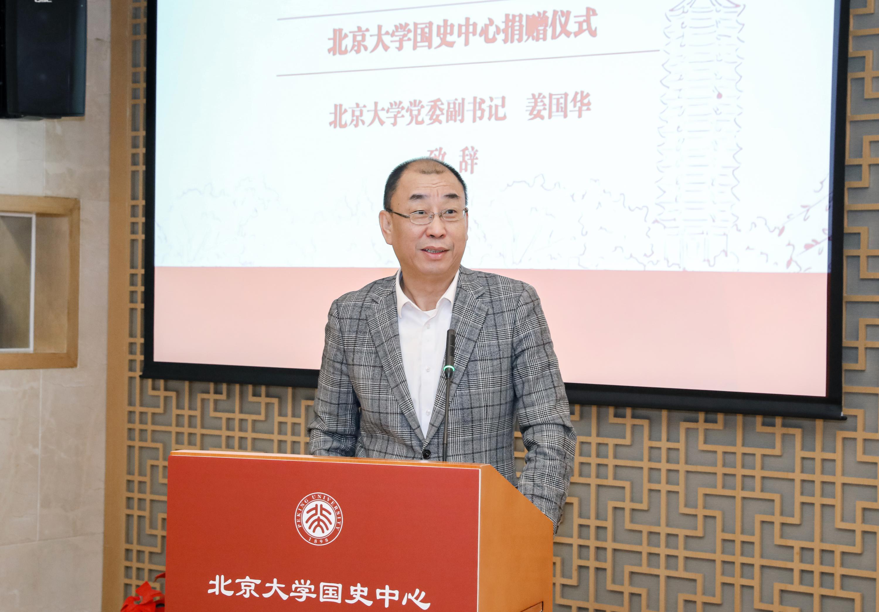 姜国华介绍了国史中心的设立背景和发展情况。他指出,国史中心在做好“典藏当代史料、书写当代信史”的基础上,着力“讲好当代故事”,成立近五年来取得了丰硕成果。他表示,此次捐赠展现了北大校友的家国情怀和奉献精神,将为中心后续发展打下良好基础,期待未来双方携手为北大的发展持续贡献力量。