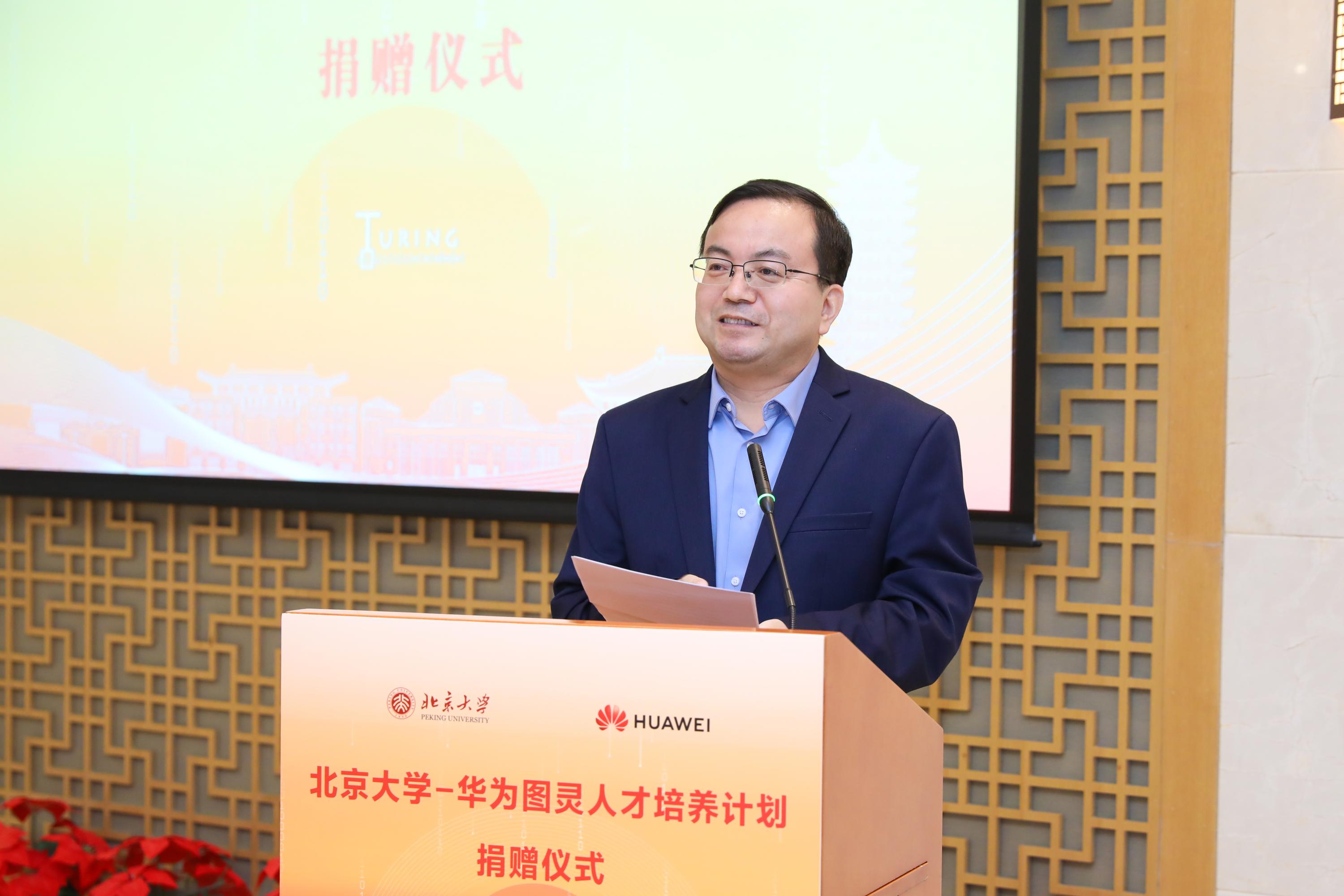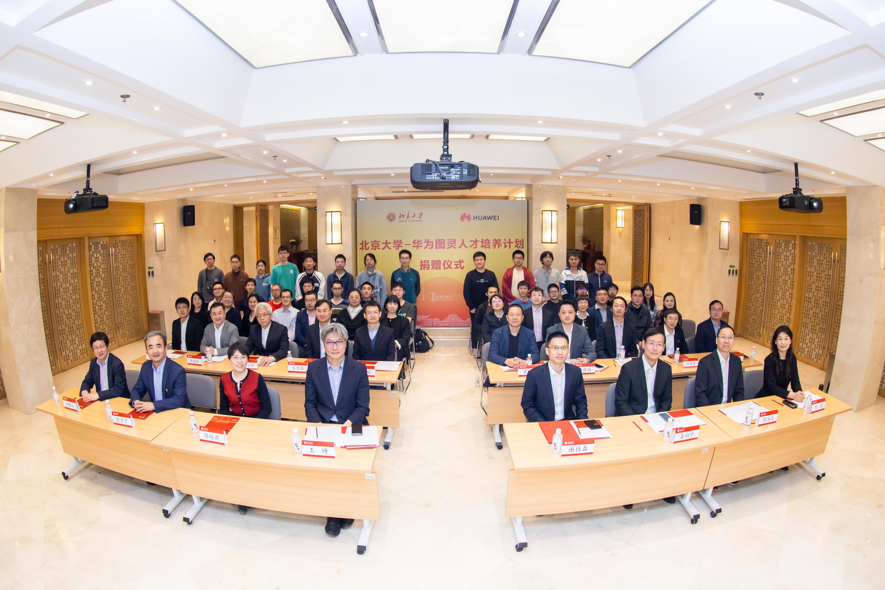华为中央软件院总裁谢桂磊、软件Fellow 陈海波,北京研究所所长姜向中,中央软件院欧拉部部长万汉阳,中央软件院高斯部部长李修昶,北京研究所人力资源部部长周菲,中央软件院人力资源部部长赵章淳,中央软件院编程语言实验室主任冯新宇,中央软件院OS内核实验室主任贾宁,与北京大学副校长、教务长、教育基金会副理事长王博,教务部部长傅绥燕,教育基金会秘书长、校办产业党工委书记兼管委会办公室主任李宇宁,计算机学院院长胡振江,信息科学技术学院院长侯士敏,研究生院培养办公室副主任瞿毅臻,图灵班师生代表等共同出席。北京大学计算机学院副院长郭耀主持仪式。