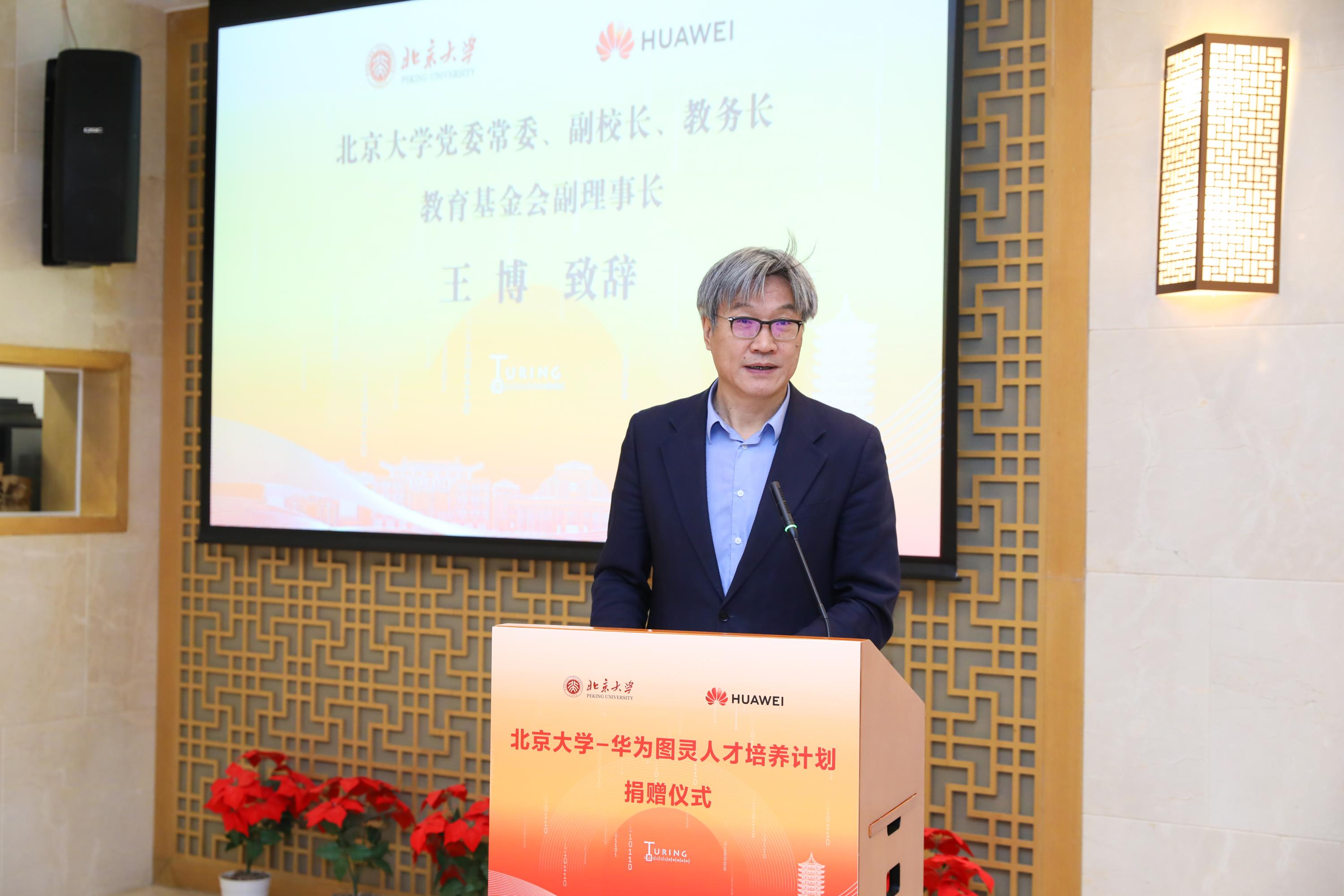 王博代表学校对华为的支持表示感谢。他指出,北京大学始终秉持开放办学理念,致力于构建产学研融合的育人生态,让学生在多元环境中自主成长。目前,学校已形成完善的本硕博人才培养体系,特别是在计算机和人工智能领域汇聚了一批优秀师资和杰出学子。他强调,与华为这样的领军企业并肩前行,既能拓展学生视野,又能促进产学研协同创新。期待未来双方能够共同探索新形势下拔尖创新人才培养新模式,为服务国家重大战略需求做出新的贡献。