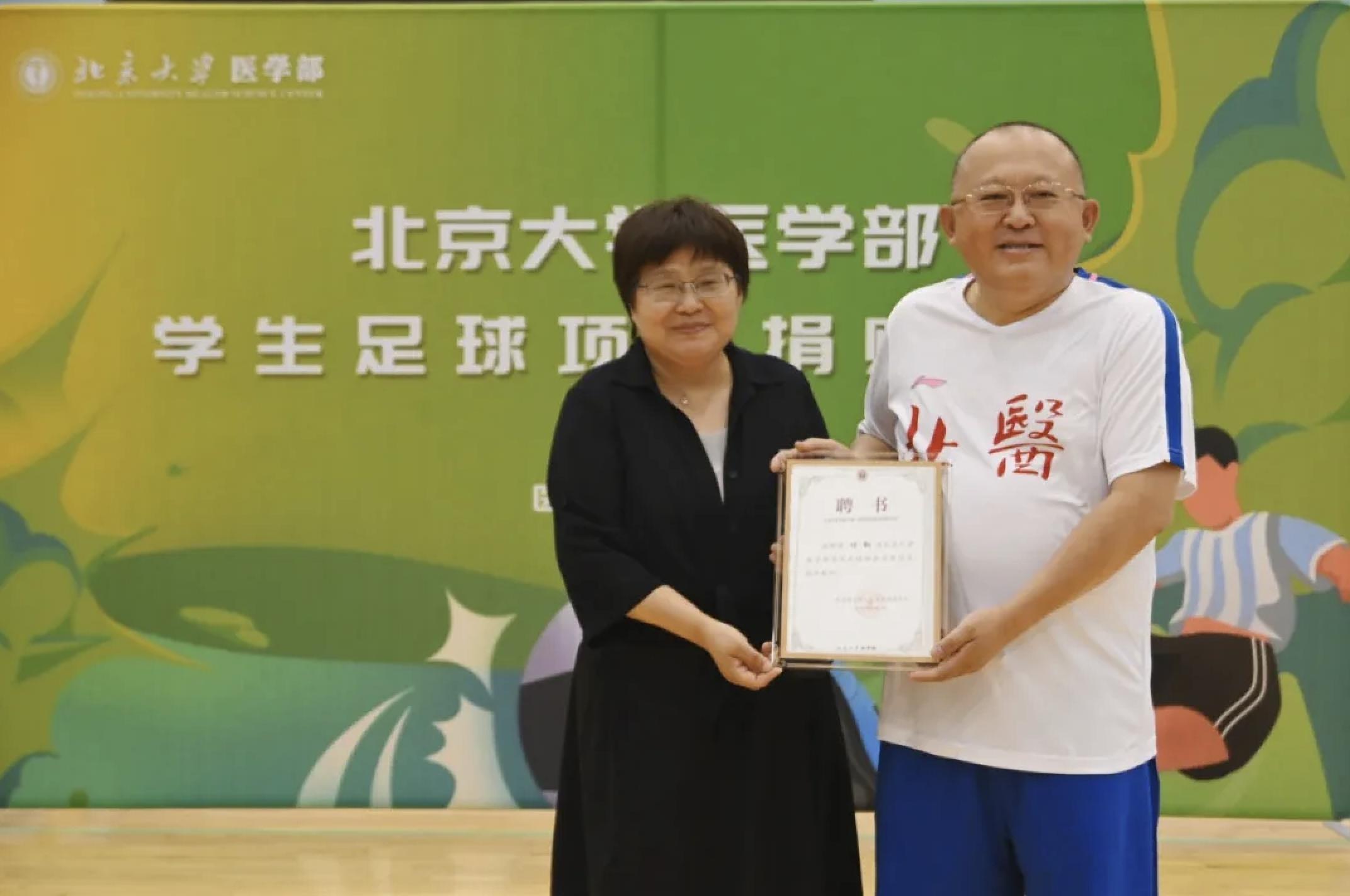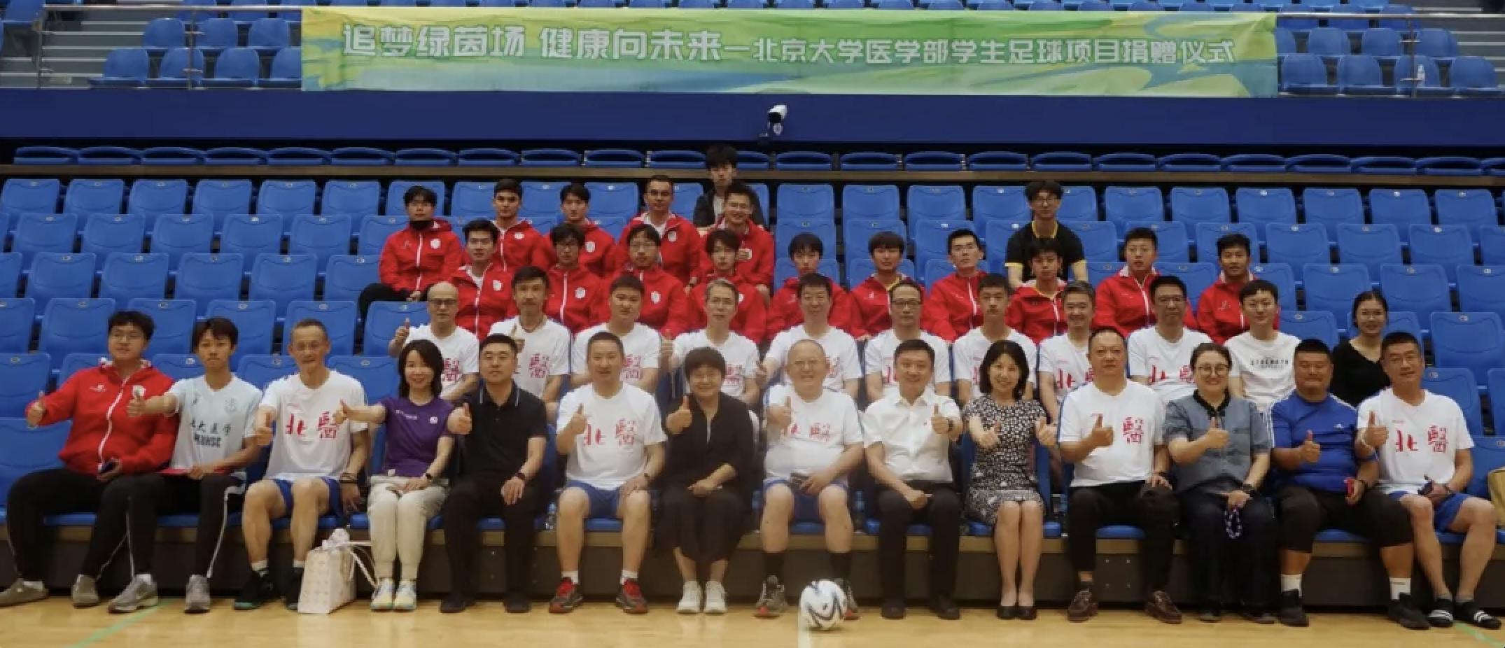 2025年6月7日,北京大学医学部学生足球项目捐赠仪式在医学部体育馆篮球馆举行。百洋医药集团有限公司董事长、北医88级校友付钢,北京大学医学部副主任、北医校友会副会长肖渊,医学部党委副书记、纪委书记王军为,校友办暨基金办主任孙莉莉,团委书记、两办副主任陈磊和20多位校友代表、医学部足球协会的同学们参加了捐赠仪式。