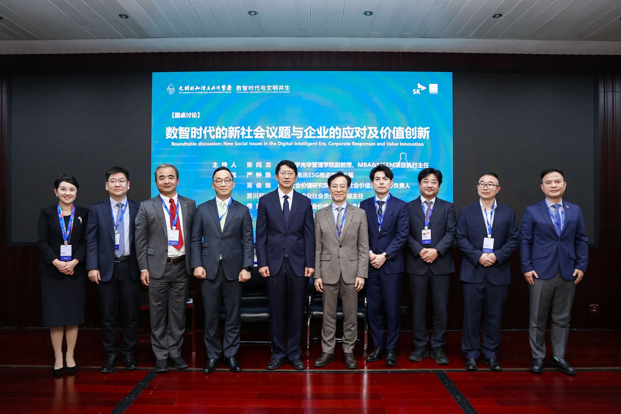 圆桌讨论环节,傅剑锋、严钟焕、宫川拓也、吴俊焕、张强共同讨论了数字智能时代的新社会议题与企业的应对及社会价值测量的未来方向。嘉宾们一致认为,AI、大数据带来了效率提升与创新机遇,也带来伦理、隐私与包容性的挑战。