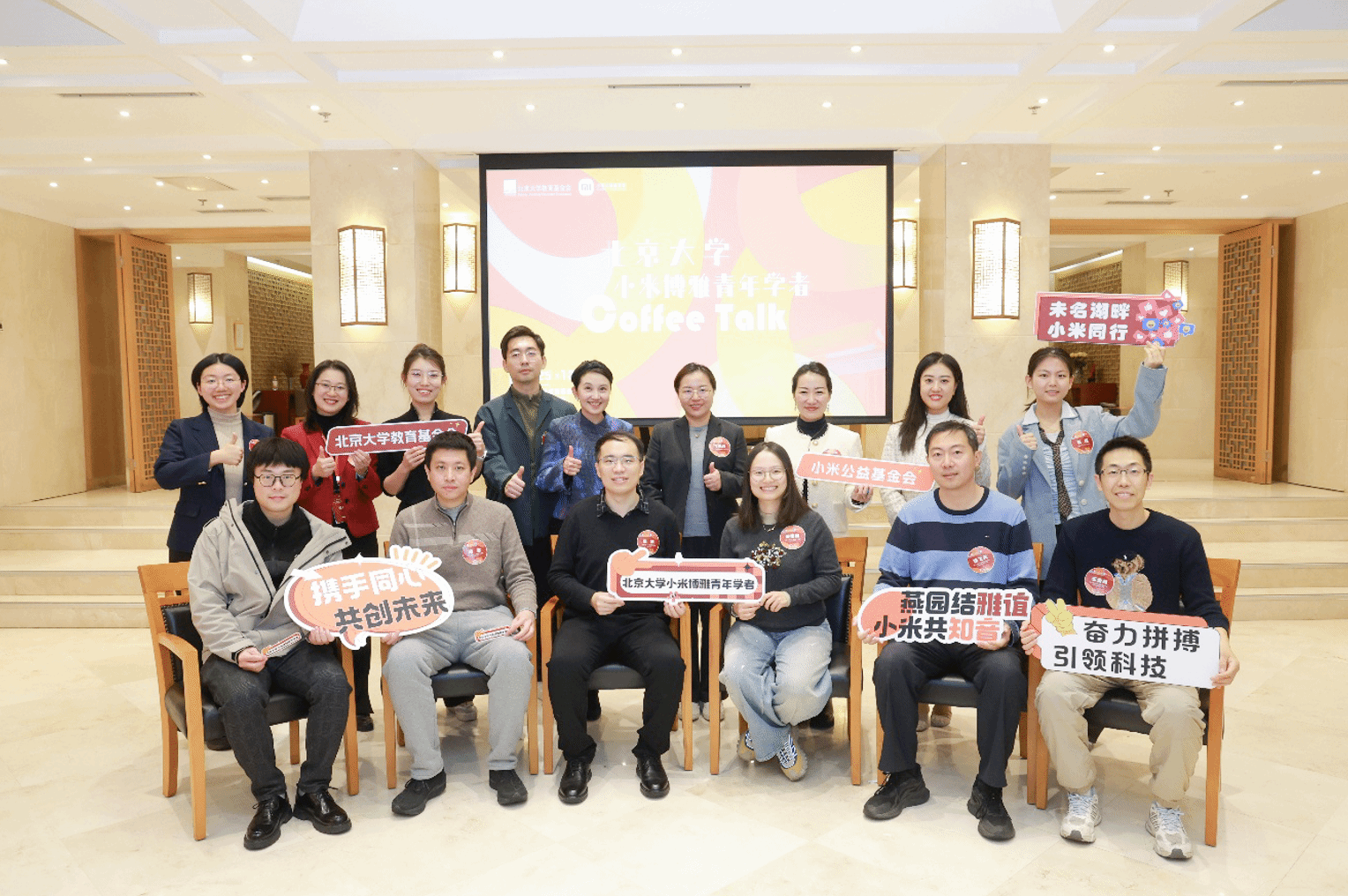 12月12日,“北京大学小米博雅青年学者Coffee Talk”活动在北京大学教育基金会北大之友报告厅举办。此次活动旨在搭建小米与北京大学的深度交流桥梁,共同探索前沿科研成果转化的支持机制。