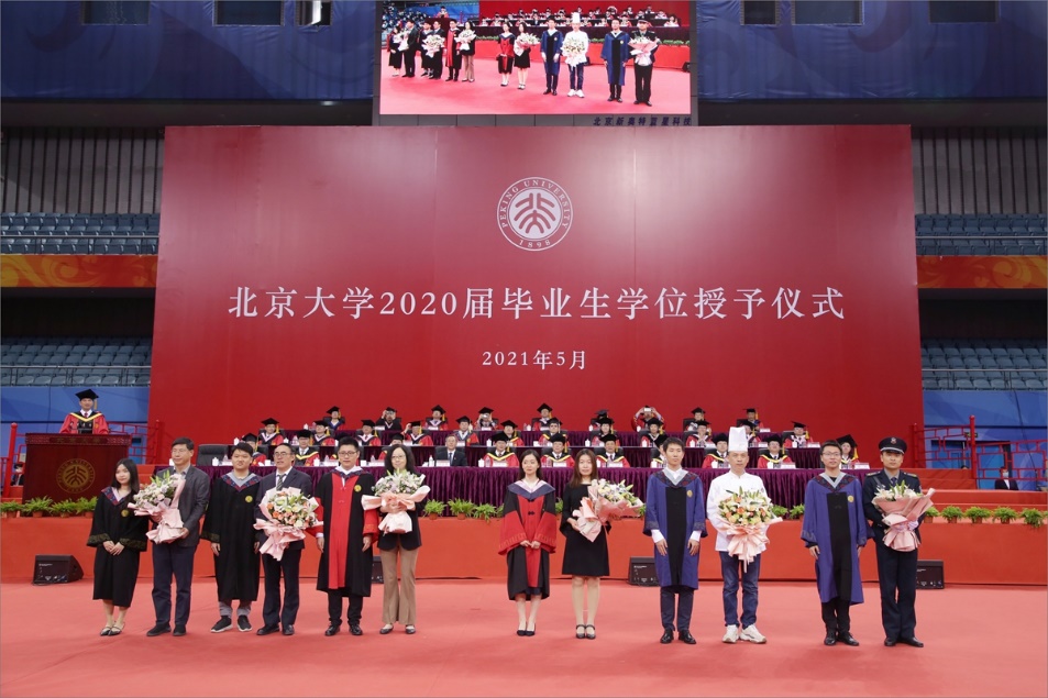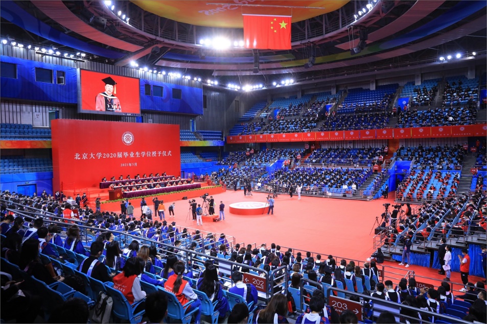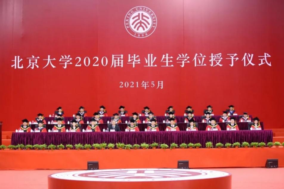 2021年5月4日上午,北京大学在邱德拔体育馆举办2020届毕业生专场学位授予仪式。北京大学党委书记邱水平、校长郝平,北京市委教育工委常务副书记郑吉春,校领导班子成员,校学位评定委员会各分会主席出席。院系职能部门负责人,教职工、中学校长、捐赠方代表等参加仪式。领导嘉宾和北大师生员工齐聚一堂,共同见证特殊时刻,为毕业生送上祝福。仪式由常务副校长龚旗煌主持。