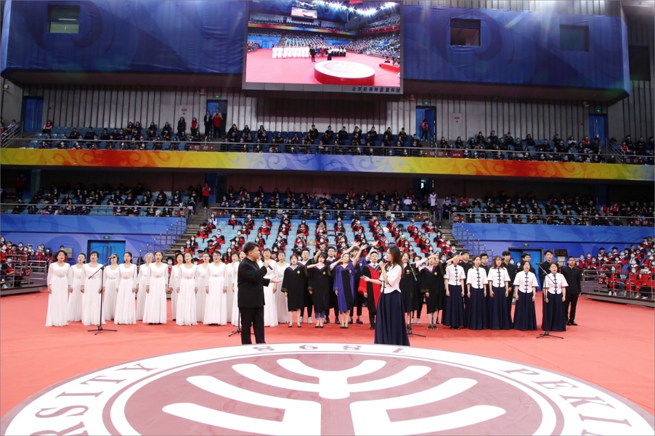 “燕园情,千千结。”仪式最后,全体师生齐唱《燕园情》。伴随着熟悉的旋律响起,毕业生们即将开启新的航程。