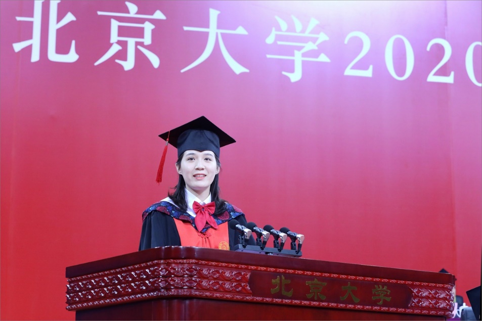今年是中国共产党成立100周年,也是我国“十四五”开局之年。站在“两个一百年”奋斗目标的历史交汇点上,北大2020届毕业生将珍藏母校的嘱托与期许,发扬“爱国、进步、民主、科学”的光荣传统,在人生新征程上扎实迈出前进的步伐,立大志、明大德、成大才、担大任,努力成为堪当民族复兴重任的时代新人,让青春在为祖国、为民族、为人民、为人类的不懈奋斗中绽放绚丽之花。