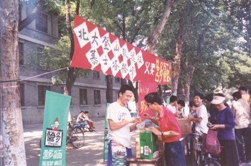 那是著名冰川学家、北大教授崔之久老师从北极归来的一次讲座。在讲座中,崔之久讲述了雪山攀登对于我国国民经济的重大意义,并意味深长地提出:“难道中国大学生就没有一点冒险精神?北大学子就不能挑起这个重担?”在爱国激情高涨、无数青年寻找为国效力机会的年代,电教室温柔的灯光顿时像道道利箭刺向一群年轻人的心。地质系1986级古生物专业本科生李欣、刘劲松和陈卫华等当即决定,为了北大、为了青年、为了中国,他们要走这第一步。1989年4月1日,北京大学登山协会正式成立(后更名为北京大学山鹰社)。