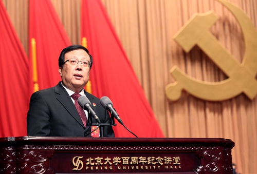 蔡奇发表重要讲话。他代表中共北京市委对大会召开表示热烈祝贺,并充分肯定了近年来北大认真贯彻党的教育方针、继续发扬“爱国、进步、民主、科学”的光荣传统、持续深化综合改革、积极推进现代大学制度建设,在人才培养、科技创新、社会服务、文化传承和国际交流等方面取得的显著成绩。