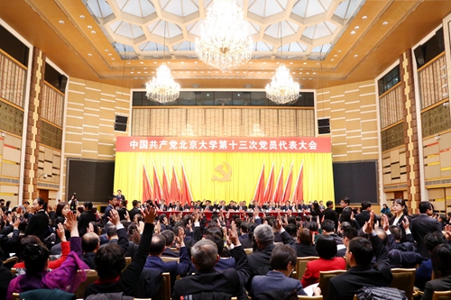 备受广大师生瞩目的中国共产党北京大学第十三次党员代表大会于2017年11月18日上午在百周年纪念讲堂开幕。本次党代会是在北大改革发展进入新时代、全校深入学习贯彻落实党的十九大精神的关键时期召开的一次十分重要的大会。大会的主题是:以党的十九大精神为指引,全面贯彻习近平新时代中国特色社会主义思想,落实立德树人根本任务,加快“双一流”建设,开启中国特色世界一流大学发展新征程,为实现“两个一百年”奋斗目标和中华民族伟大复兴的中国梦作出新的历史性贡献。