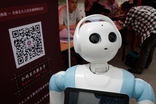 下午1点,邱德拔北广场的总服务台就开始了忙碌。办理校友卡、为母校捐赠、办理中银北大信用卡、领取地图活动材料 ……校友们在返校日活动的这一站感受到了来自母校的深深关怀。长期在校友会微信服务号后台回答校友问题的神秘“燕缘君小师妹”现身到场祝贺,“小师妹”现场与大家互动,体现了科技的进步与暖人的关怀。