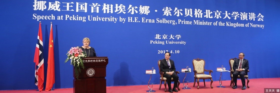 挪威首相埃尔娜·索尔贝格访问北京大学并发表演讲