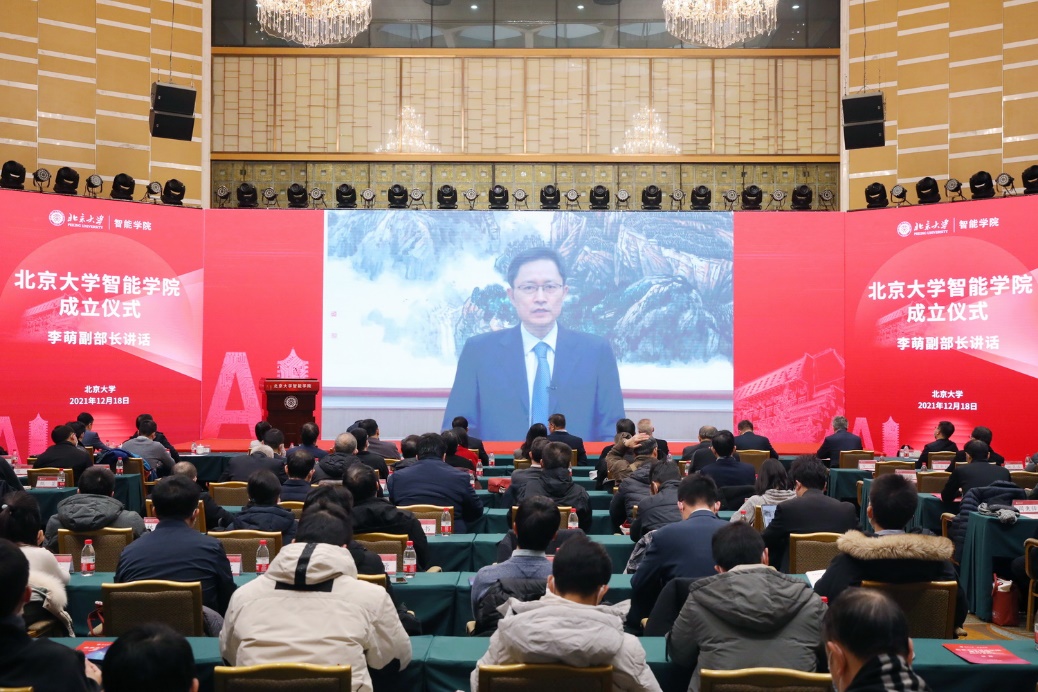 2021年12月18日上午,北京大学智能学院成立仪式在英杰交流中心阳光大厅举行。北京大学党委书记邱水平、校长郝平,副校长张平文、黄如,校长助理、秘书长孙庆伟等校领导;北大原常务副校长迟惠生,清华大学信息科学技术学院院长、中国人工智能协会理事长、中国工程院院士戴琼海,北大未来技术学院程和平院士、信息科学技术学院彭练矛院士等专家学者;北京市科委、中关村管委会、北京通用人工智能研究院、北大相关职能部门和院系负责人,以及北大智能学院的师生和校友代表等参加成立仪式。北大朱松纯教授主持活动。