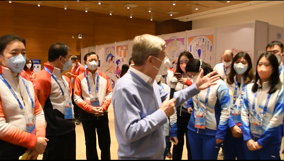 在北京2022年冬奥会即将开幕之际,1月30日中午,国际奥委会主席巴赫前往国家会议中心OFA(奥林匹克大家庭助理)办公室参观交流。
