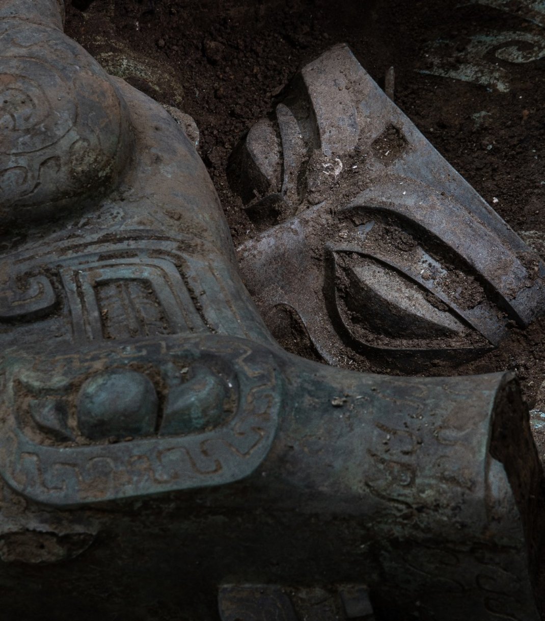 更为重要的是,一大批新器物、新现象在北大考古人的精细工作下逐渐展现于世人面前。如大型青铜立人神兽,是三星堆目前发现的最大体积的动物造型青铜器;多级人像青铜神坛,直接反映了古蜀人祭祀场景。虎头龙身青铜像、顶尊倒立神人像、黄金面具青铜头像等器物,均为此前中国青铜时代前所未见的大型铜器,引起了学术界和媒体的高度关注。此外,8号坑中还发现了大量兼有古蜀文明、中原文明和国内其他地区文化因素的古代遗物。