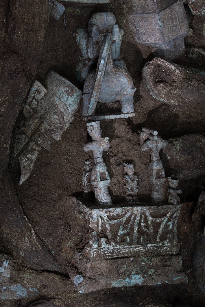8号坑中的多级青铜神坛近况