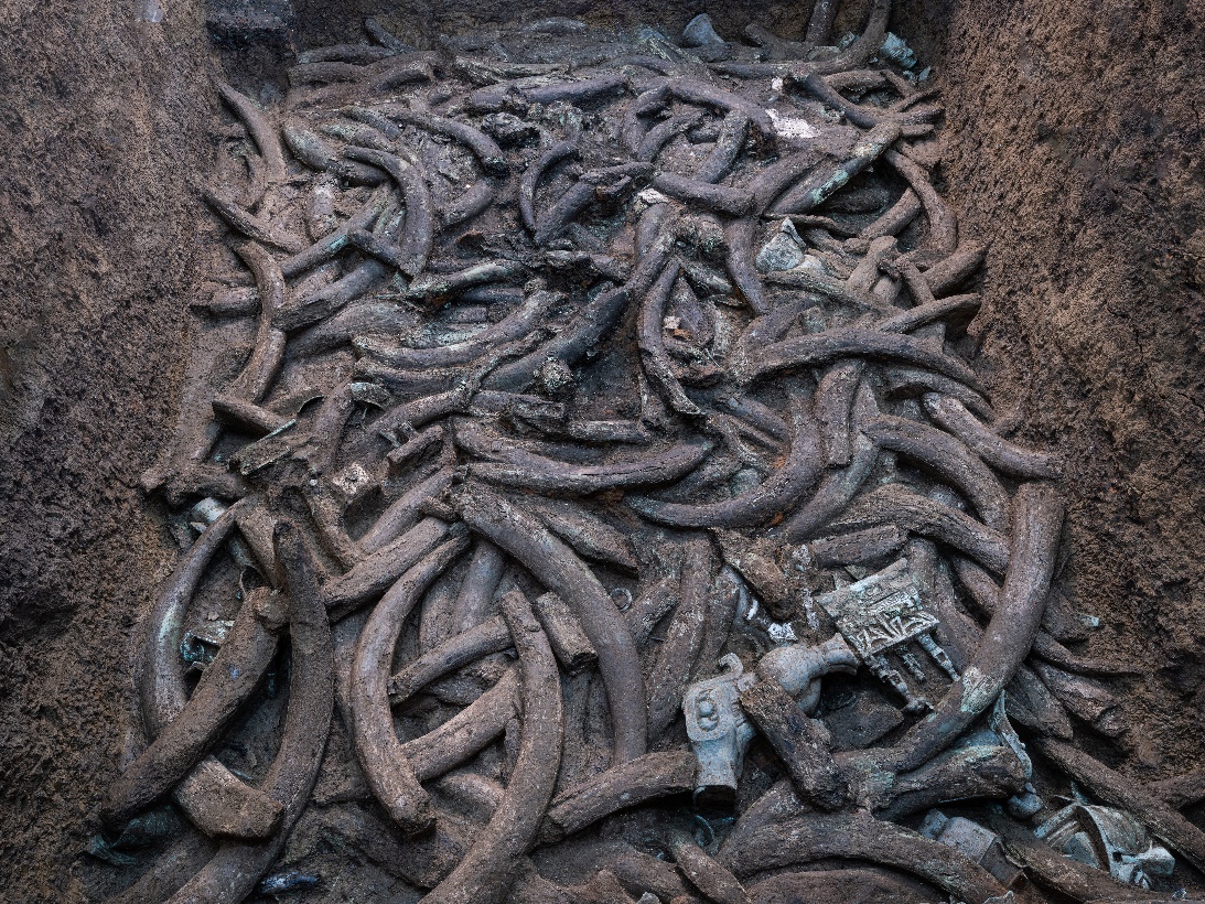 8号坑中象牙的密集堆积