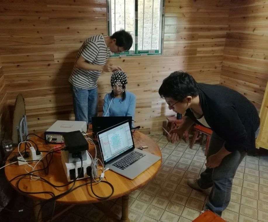 实验室博士生刘文、吴南开在苗族地区做苗语语言和音律的脑电实验