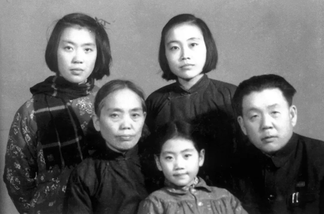 1958年,邓广铭教授与夫人窦珍茹、女儿邓可因、可蕴、小南在一起