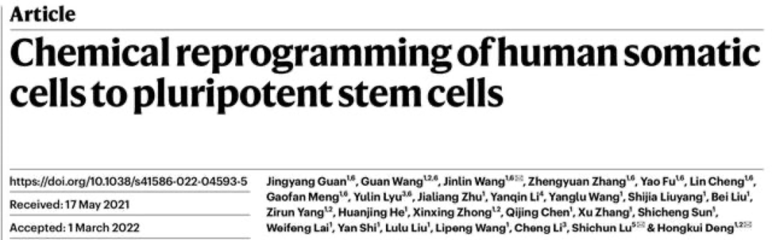本次研究中,邓宏魁团队首次报道了使用化学重编程的方法,成功实现了使用化学小分子将人成体细胞诱导为多潜能干细胞(人CiPS细胞)。