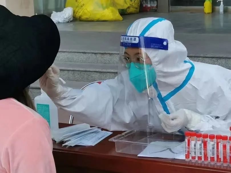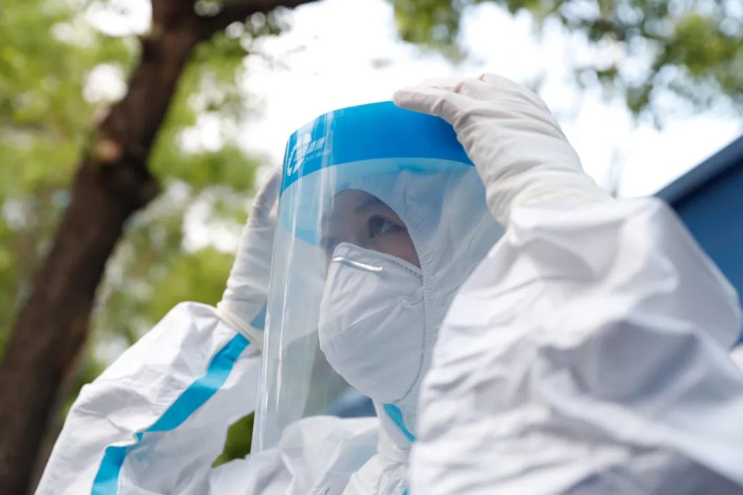 医护人员穿上防护服变身“大白”,准备开始一天的核酸检测工作