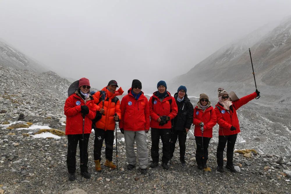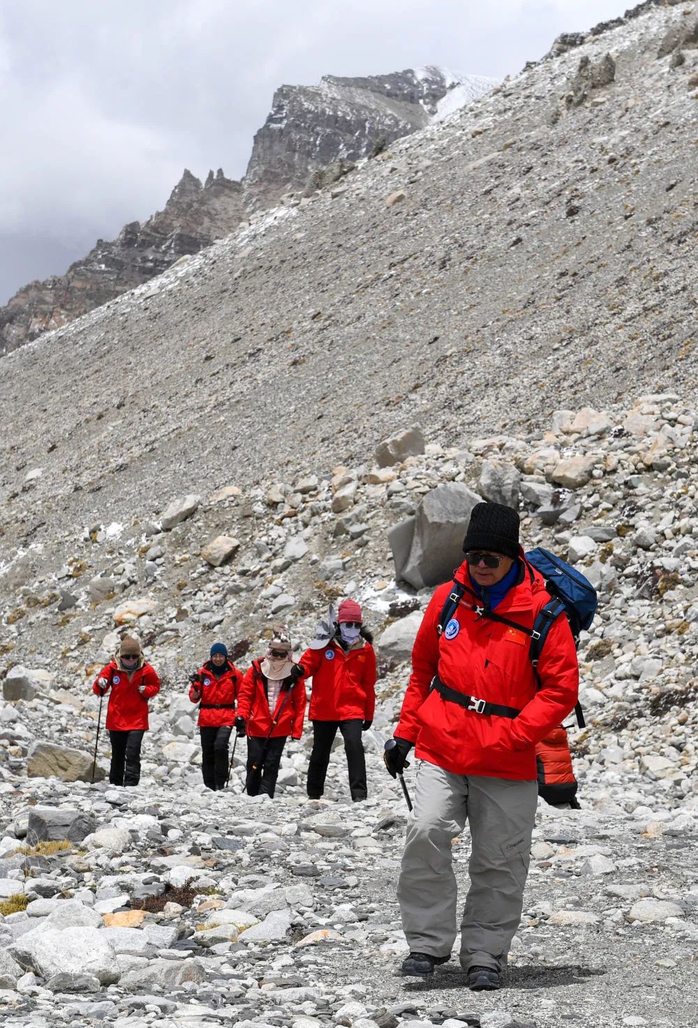 朱彤院士(右一)率领队伍在绒布冰川附近进行拉练