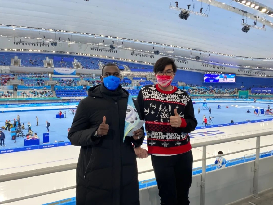 陈志轩与朋友在2022年北京冬奥速度滑冰比赛现场