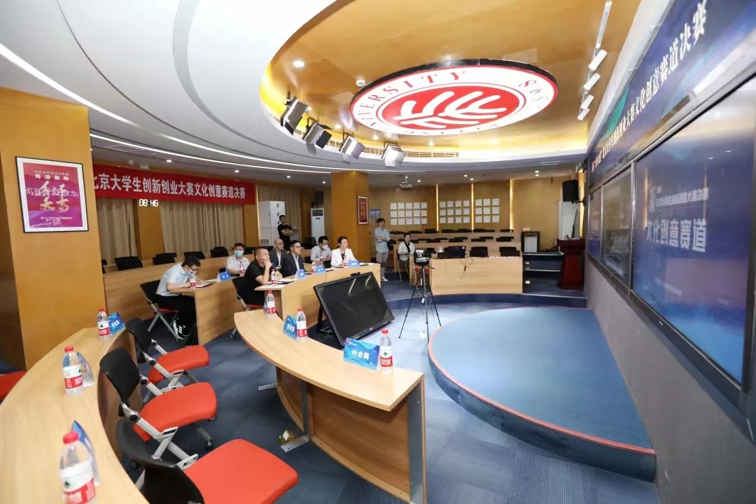 校内通过层层选拔,组织北京大学第二十一届创业大赛,最终推荐出项目,图为校内赛线上答辩