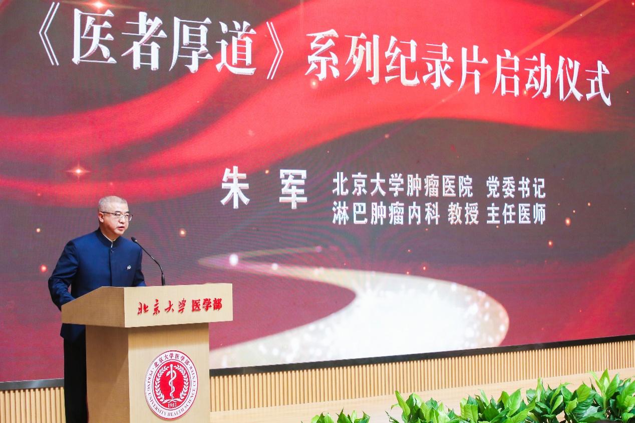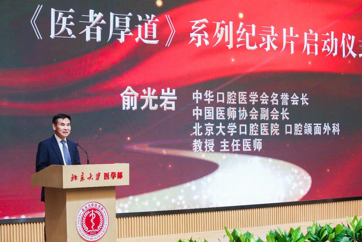 此次活动还举办了北大系列纪录片《医者厚道》的启动仪式。该片是北京大学首部系列观察型行医纪录片。纪录片总顾问、第十届、十一届全国人大常委会副委员长,第十二届全国政协副主席、中国科协名誉主席、中国科学院院士韩启德通过视频对纪录片启动发来寄语。韩启德认为,一系列优质行医纪录片的推出,将有助于医患之间相互了解、加强信任,从而促进医患关系向善发展,这是社会文化层面对医者最好的“守护”。纪录片医师代表、口腔医院俞光岩教授和肿瘤医院朱军教授发言,与在场青年医师们分享自己的从医感悟和“厚道”情怀。嘉宾们共同上台在大屏幕上按下手印,宣布《医者厚道》系列纪录片正式开机。