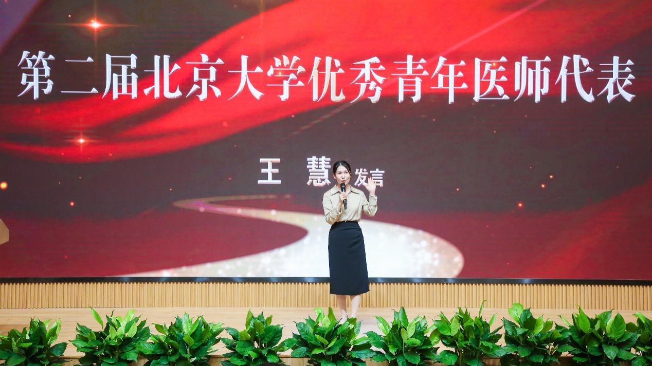 祝学光代表老专家发言,她深情讲述北医情怀,分享从医感悟。北京大学青年医师奖的评选,是践行习近平总书记“修医德,行仁术,怀救苦之心,做苍生大医”的嘱托,为培养更多优秀青年医师、完善高水平临床医学人才培养体系作出的有益探索和引领。她以北医老一辈卓越的医学前辈为榜样,鼓励青年医生努力奋斗,为实现民族复兴的中国梦添砖加瓦。