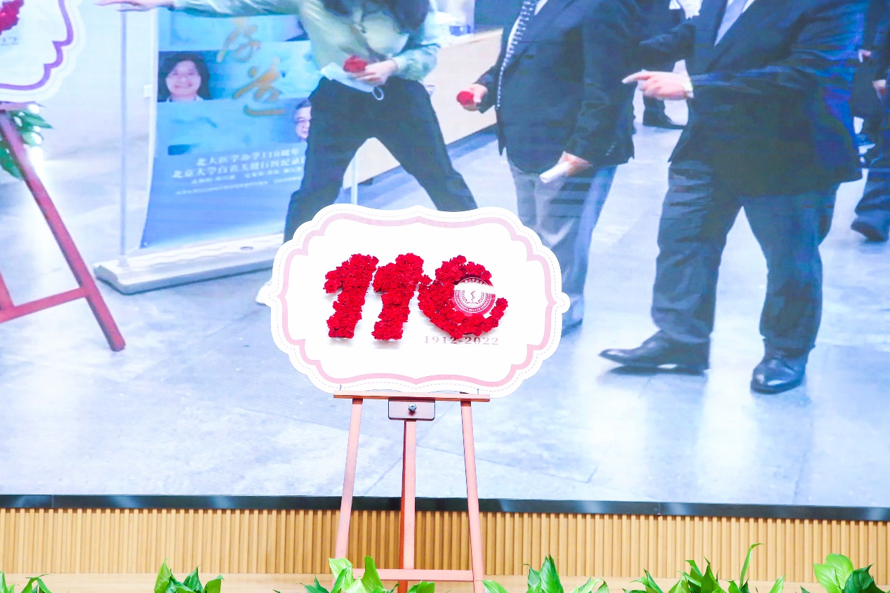 由获奖医师和嘉宾们亲手插制的110朵康乃馨花架推到舞台中央,表达了对北大医学办学110周年的祝福,希望北大医学的明天会更加辉煌!