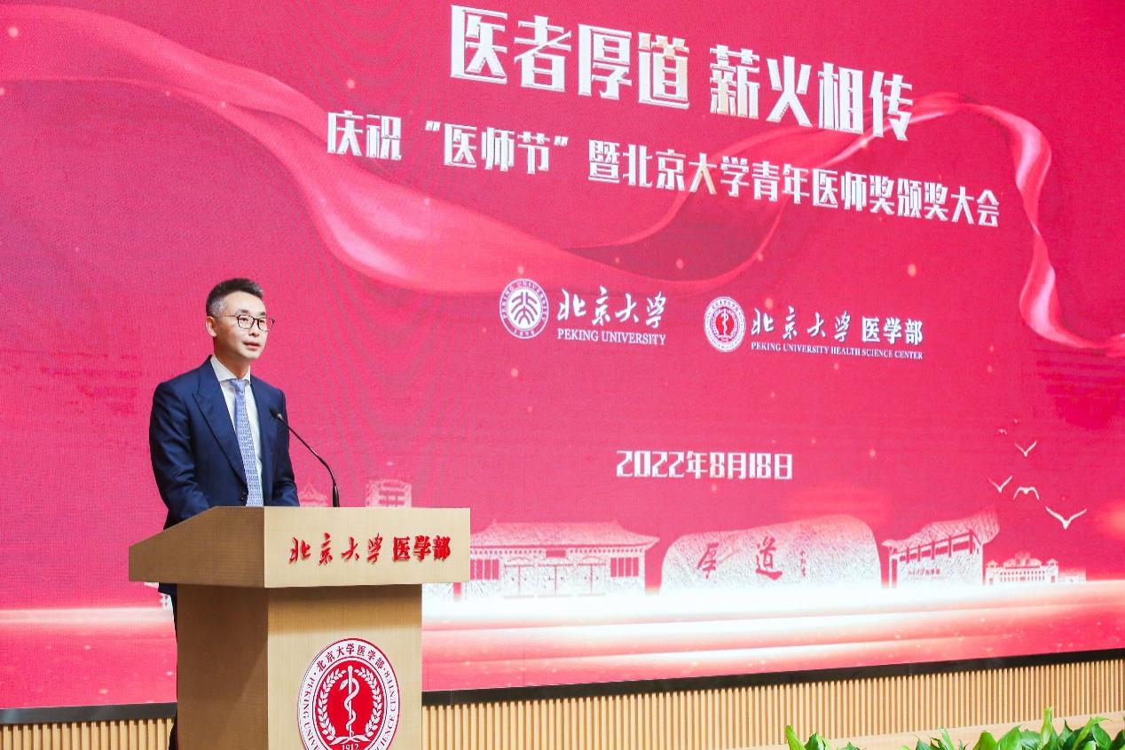 陈宝剑宣读了表彰决定。此次对青年医师的表彰,在弘扬优秀典型的同时,充分展现了北大医学优质创新的培养模式。杰出、优秀青年医师代表,体现的是北大高水平临床医生成长的两个阶段——“标准化培养和个性化成长”,他们都有扎实的基本功、鲜明的专业特色和创新的临床思维。未来北大医学将建立培养高水平临床医师的体制机制、建立引领全国培养高水平临床医师的北大医学模式,培养出更多符合时代要求的“苍生大医”!通过此次表彰活动,鼓励青年医师们努力提高专业技术水平,勇攀医学科技高峰,做引领我国医疗各领域发展的领头雁;发扬北大“敢为天下先”的优秀传统,立足全球医学发展前沿,实现从“跟跑者”向“领跑者”转变。