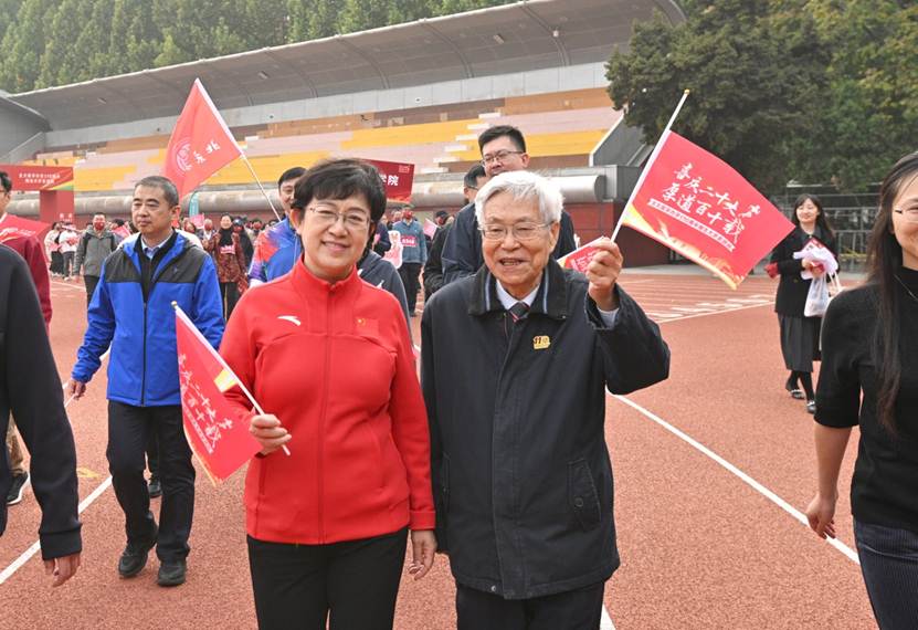 在10月26日下午举办的“喜庆二十大,厚道百十载”——北大医学办学110周年师生大步走活动中,北京大学校长龚旗煌,乔杰,陈宝剑,医学部党委常务副书记徐善东,北京大学党委办公室校长办公室主任王新强,医学部副主任段丽萍、肖渊、王嘉东、孙智利,医学部党委副书记、工会主席朱树梅,医学部主任助理范春梅出席活动。活动还特别邀请了中国工程院院士、基础医学院教授庄辉,药学院教授焦宁,公共卫生学院研究员刘珏,第一临床医学院临床医学八年制学生周庆庆等师生代表与领导共同为大步走活动鸣枪发令。九大方阵、1100余名师生以步为引赓续红色血脉,向北大医学献上最诚挚的生日祝福,展现了踔厉奋发、勇毅前行的姿态,彰显了自信自强、守正创新的精神,以更加昂扬的斗志奋进新征程、建功新时代。