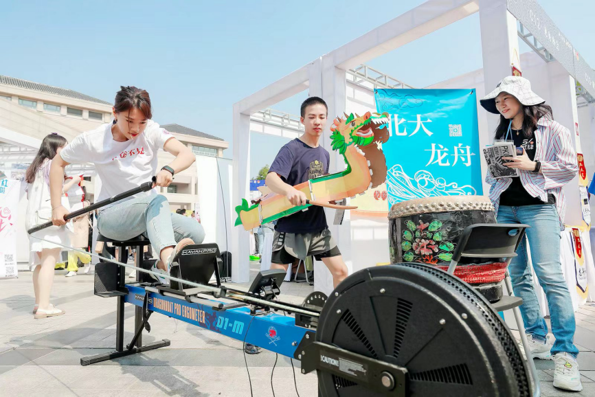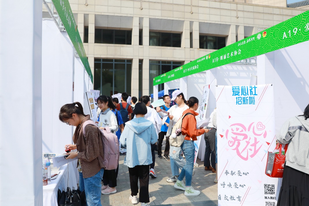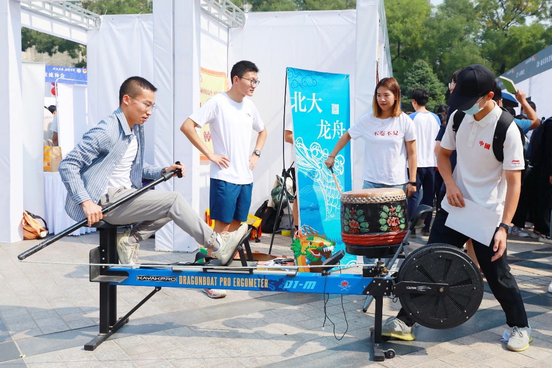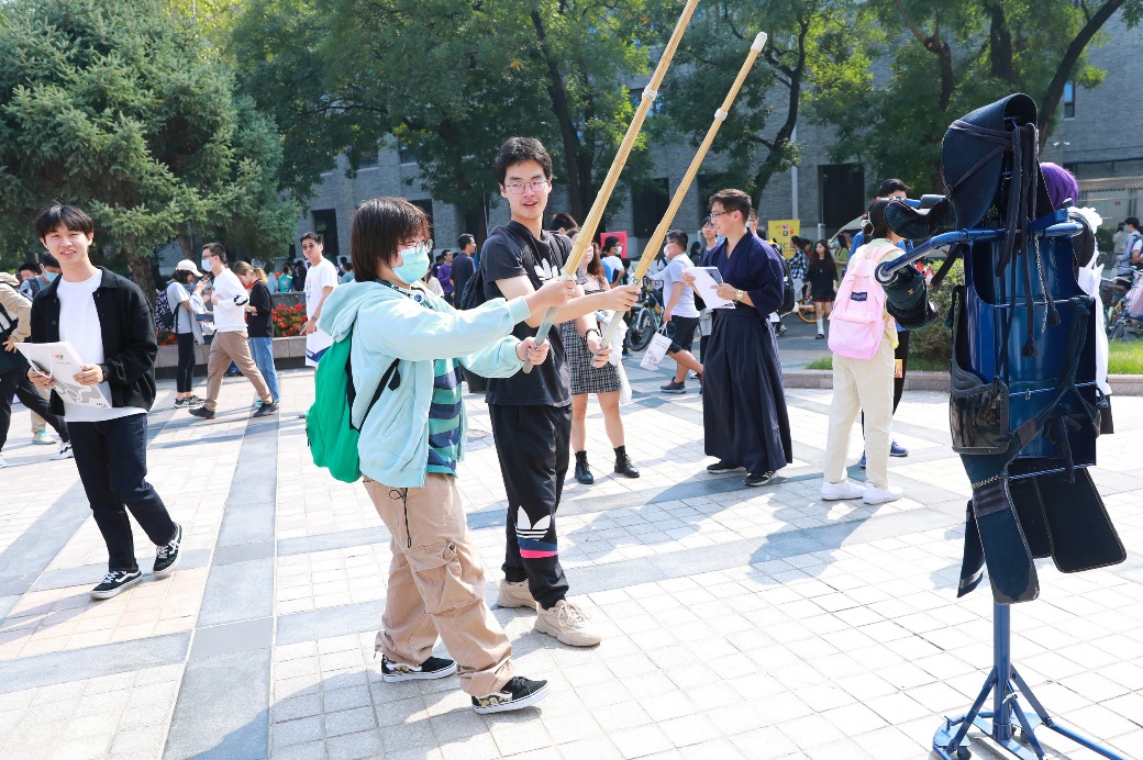 社团互动展示区更是人山人海,欢笑不断。星火双截棍协会在现场准备了双截棍供同学们亲身体验;吉他协会吸引同学们纷纷驻足,展位前的摇滚表演点燃现场;英语文化交流协会充满趣味的答题摇骰子的活动寓教于乐;书画协会备上笔墨纸砚,让同学们在落笔的同时感受古色古香的书法国画韵味;龙舟协会场地中的龙舟测功仪和助威鼓让同学们仿佛在宽广江河中龙舟竞渡。无论动静,不分地域,各社团欣欣向荣,百卉含英,大家各显身手,朝气蓬勃,为北国之秋增添了些许暖意,让在场的同学们走进了“繁华似锦”的社团之春。