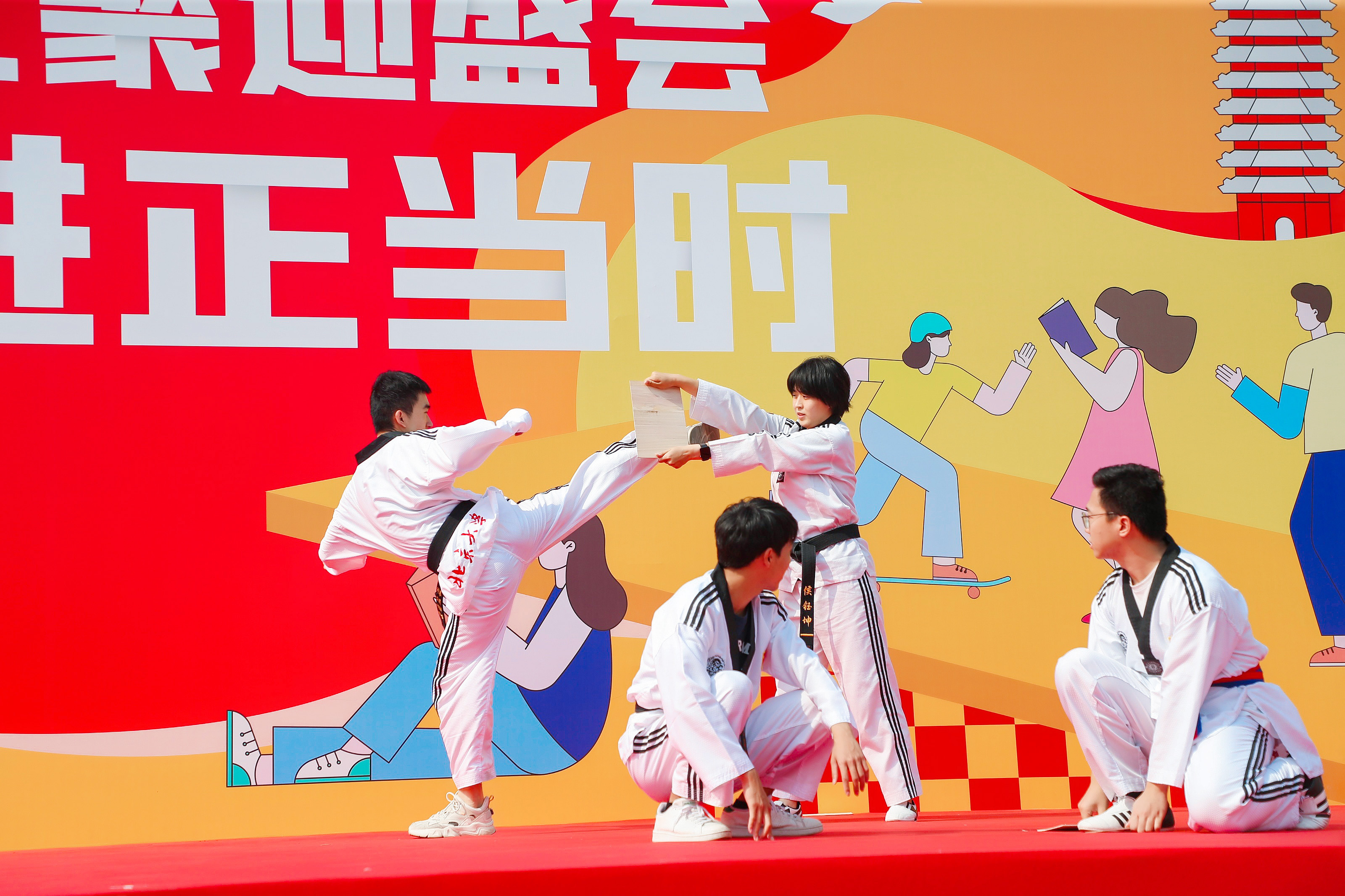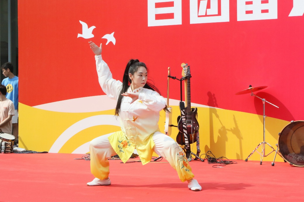 随着精武体育会《武韵》武术表演的亮相,北京大学第二十六届社团文化节主题展演拉开帷幕。吉他协会以歌声与乐声相和,点燃同学们心中的青春激情;朗诵艺术协会倾情朗诵《我的南方和北方》,优美的诗篇带观众徜徉在祖国的大好河山之间;阿卡贝拉清唱社用悦耳的和声演唱歌曲《生生不息》,唱响生命与希望的力量。台上各类节目轮番登场、精彩纷呈,台下观众掌声阵阵、欢快互动,将活动现场气氛推向高潮。