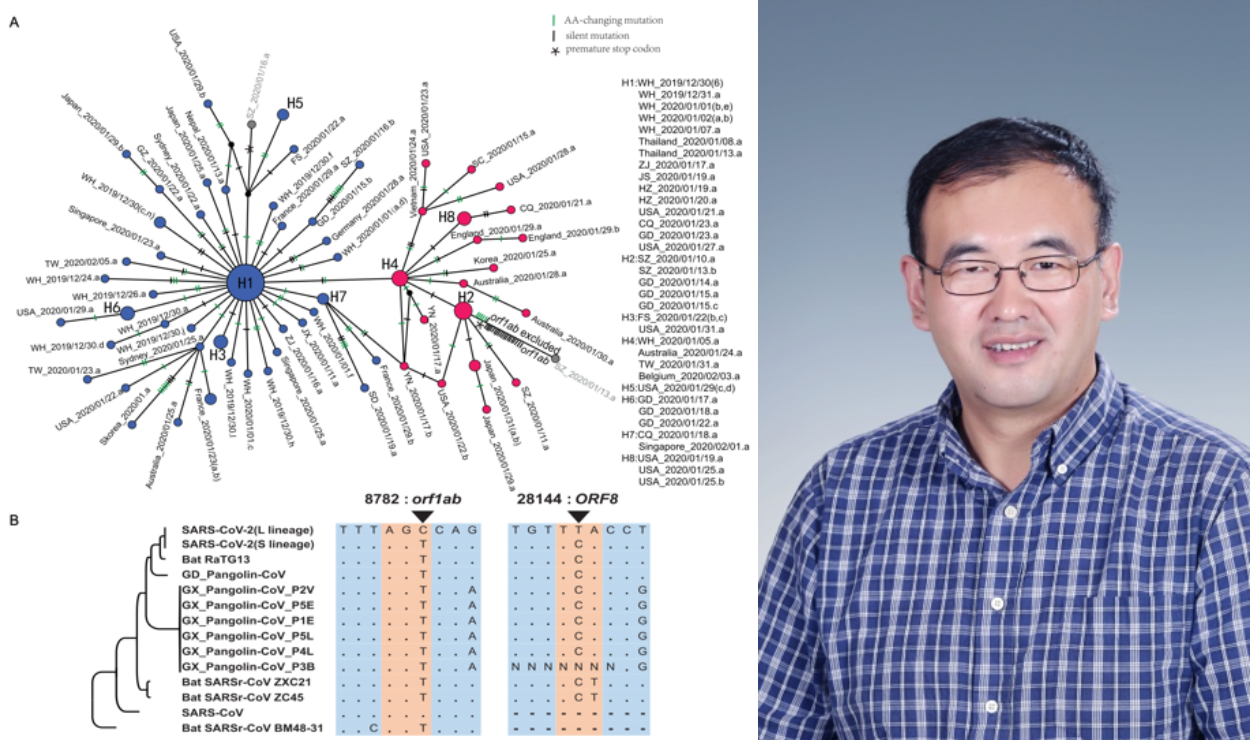 新冠病毒(SARS-CoV-2)作为一种正义单链RNA病毒,具有较高的突变率,在传播过程中不断变异、分化、更新迭代,甚至出现免疫逃逸和跨物种传播。目前公共数据库中已有上千万条新冠病毒全基因组序列,病毒基因组几乎所有位点都已经发生过变异。然而,如何鉴定新冠病毒适应性变异?如何预测传播趋势?病毒基因组进化方向与现有干预手段如何博弈?这一系列科学问题充满挑战但亟需解决。陆剑团队以进化基本理论为指导,聚焦新冠病毒变异、适应性进化及流行趋势,取得一系列成果:(1)开展分子进化分析率先揭示新冠病毒分为S和L两个主要谱系;(2)构建新冠病毒分层次谱系划分系统,揭示新冠病毒进化轨迹;(3)联合病毒分型和临床症状分析揭示S和L谱系在致病性方面的差异;(4)利用分支过程揭示新冠病毒传播中的奠基者效应;(5)结合群体遗传基本理论和大数据分析揭示新冠病毒的进化规律。该项目成果为科学防控新冠疫情以及高效阻断其它新发突发传染性公共事件提供了理论依据和方法学支撑。