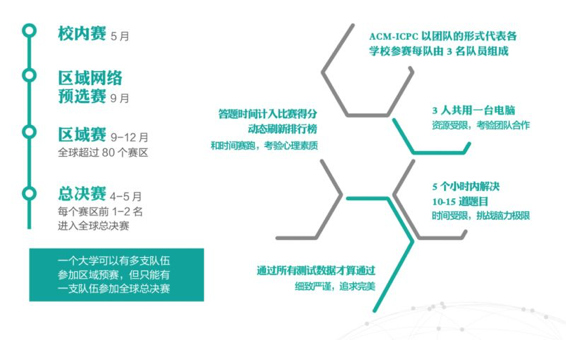 国际大学生程序设计竞赛 ICPC( International Collegiate Programming Contest )是面向大学生的全球性编程竞赛,由美国计算机学会ACM( Association for Computing Machinery )于1970年发起组织,是一项旨在展示大学生创新能力、团队精神和在压力下编写程序、分析和解决问题的年度国际竞赛。经过四十余年的发展,国际大学生程序设计竞赛已经成为全球最具影响力的大学生计算机竞赛,被誉为“计算机软件领域的奥林匹克” 。