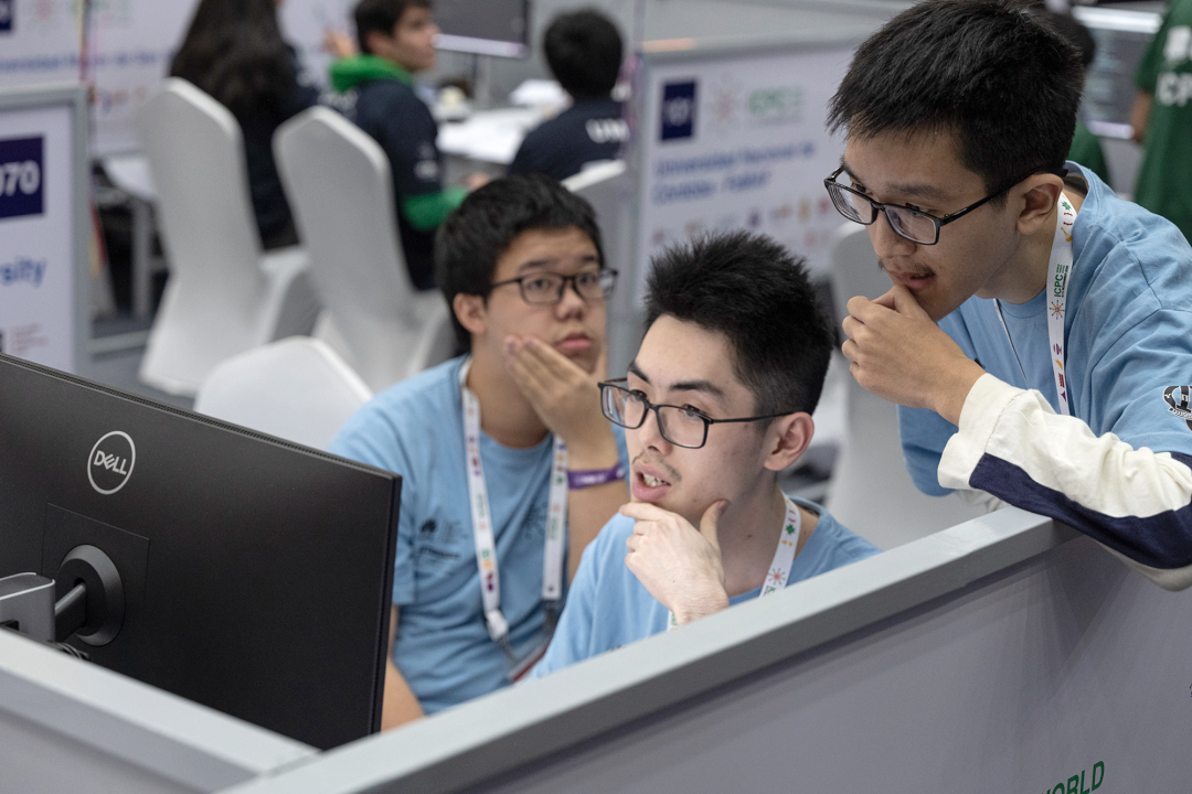 人声嘈杂的考试场地,三人共用一台电脑,五个小时解决十道题目……国际大学生程序设计竞赛全球总决赛( ICPC World Finals )中,由北京大学周雨扬、孔朝哲(曾获李彦宏奖学金)、潘骏跃三名同学组成的队伍鏖战正酣,向全球金牌冲刺。