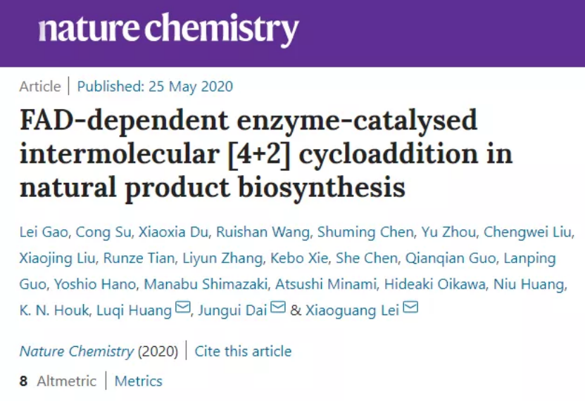 雷晓光课题组与合作者发现自然界中首例催化分子间Diels-Alder反应单功能酶