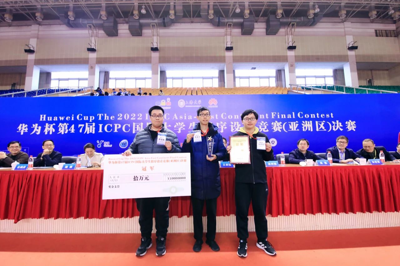 华为杯第47届国际大学生程序设计竞赛ICPC(International Collegiate Programming Contest)(亚洲区)决赛,于3月24-26日在上海大学宝山校区举行。经过激烈的角逐,由北大信息科学技术学院王展鹏、蒋凌宇和北大数学科学学院罗煜翔三位本科生组成的队伍荣获冠军,这也是三位同学在ICPC竞赛中的第二次夺冠!