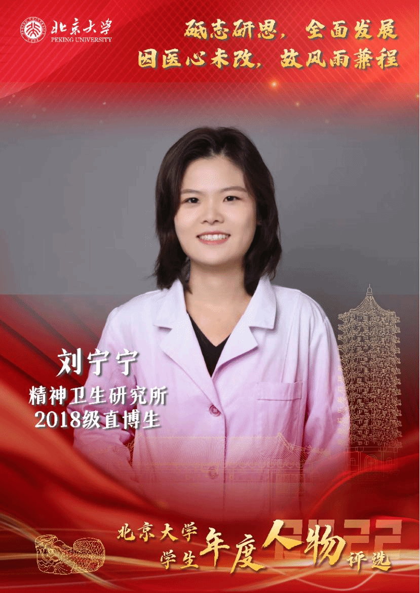 “勤奋、严谨、求实、创新”,自入校以来,刘宁宁用自己的实际行动诠释了北大学子的优良学风。她深耕精神卫生领域,专注儿童精神健康,目前发表或接收SCI文章13篇;她多次受邀于全球fNIRS大会、世界ADHD大会等进行口头汇报或壁报展示,并获得优秀博士论文等称号;她响应国家号召,组建专业团队开展精神心理科普,希望用自己的实际行动帮助更多的孩子和他们的家庭。
