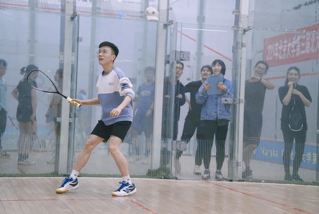 他以体育为根基,完全人格。作为志愿者,甘轲晗积极助力校运会、冬季越野跑等校园体育活动。作为壁球课助教,他创造性地组织班级壁球交流赛,获得了众多师生的好评。