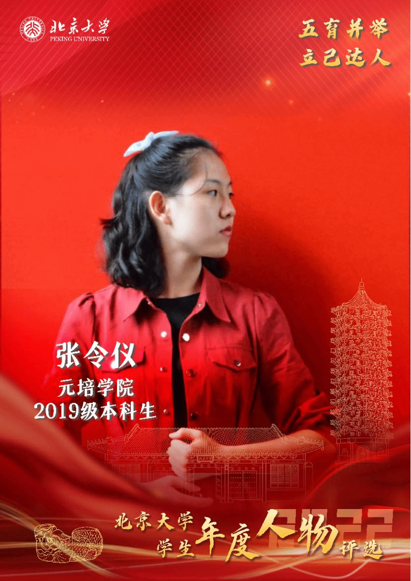 她勤奋刻苦、奋进学海。张令仪获国家奖学金(2次)、优秀学生干部、五四奖学金、三好学生标兵(2次)、朗润青年奖学金等奖励,入选国发院“中国金融四十人路劲奖学金班”。在元培学院4年综合测评中两次第一、一次第二,在生命科学学院中GPA连续3年排名第一。