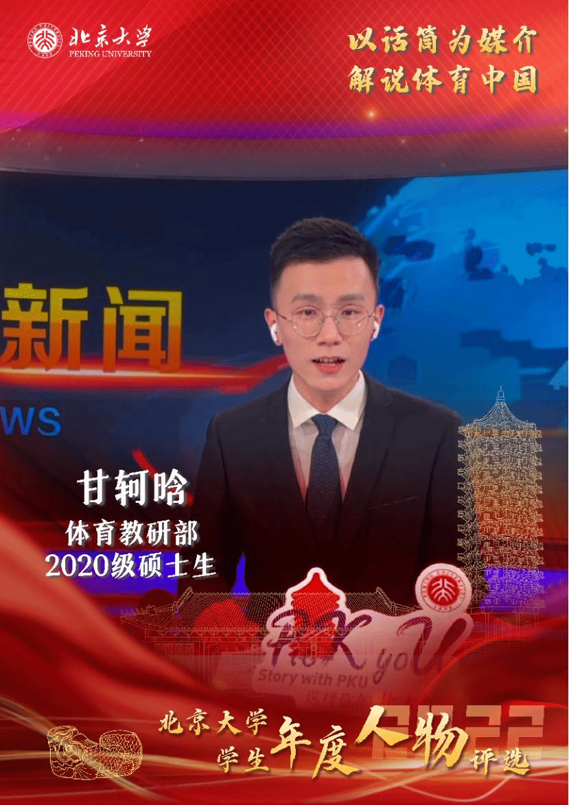 他以实践为纽带,不忘初心。在去年的北京冬奥会中甘轲晗积极活跃于台前幕后,不仅为冬奥组委官网供稿多篇、主创短片记录北京冬奥中的北大体育人,更是先后于广东广播电视台体育主持人大赛、“优酷体育杯”全国高校解说员大赛中脱颖而出,在冬奥会等大型赛事中发出自己的声音。