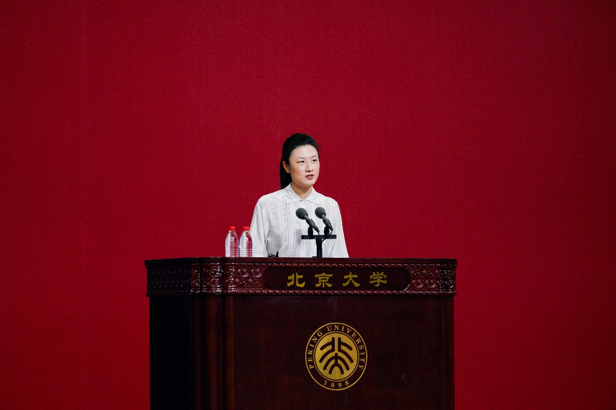 奥运乒乓球冠军、北京大学体育教研部教师丁宁,以自己的奋斗经历为主线,向在场师生介绍自己在追梦路上“筑梦、逐梦、圆梦、续梦”的过程。她讲述自己在赛场上先后经历两次重大失利的经历,通过不断历练,她最终认识到,相比于面对别人的看法和眼光,每个人更重要的是学会如何认识自己、如何面对自己的初心。她向全体新生提出了“热爱运动,加强体育锻炼”“直面困难,敢于挑战自我”和“保持初心,坚定追逐梦想”三点建议,并鼓励新生永不停止追求的步伐,怀一颗勇敢的心,在磨砺和挑战中成长,为中华民族的伟大复兴作出新一代北大人的贡献。