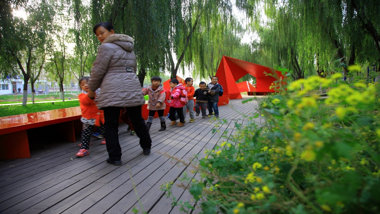 迁安三里河绿道——母亲河的再生(河北省迁安市,2011年)。迁安三里河绿道是由原垃圾场、污水沟改造而成。它展示了如何将被忽视的景观恢复为绿色基础设施和日常市民的景观,并通过恢复的生态系统提供多种服务。用于通勤和休闲的步行道和自行车道与艺术融为一体,通过反映当地传统来振兴社会和文化认同。通过其显著的生态和美学效益,该项目促进了该地区的可持续城市发展。