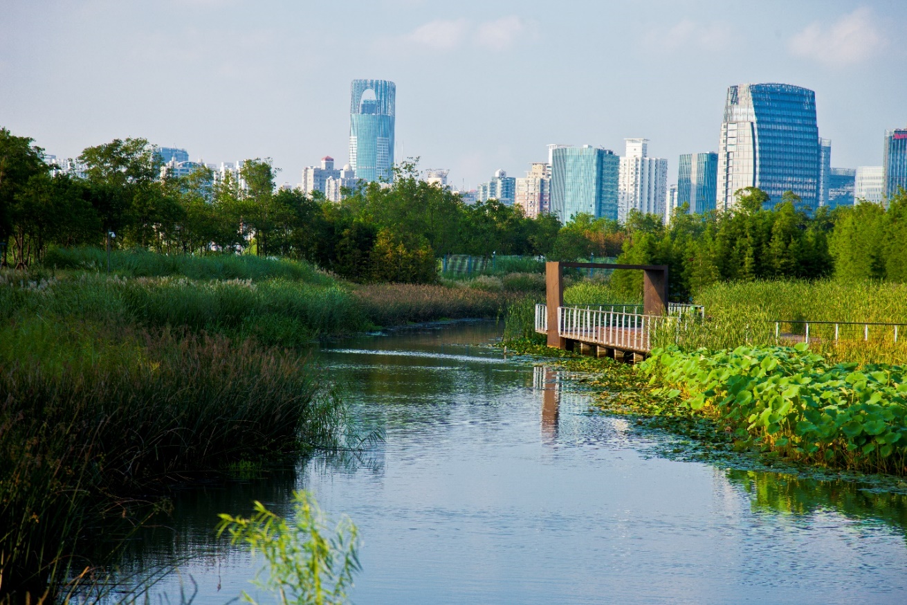 南昌鱼尾洲公园——漂浮的森林(江西省南昌市,2021年)。这是在一处污染严重的城市垃圾场和养鱼场上以极其低廉的预算建造而成的海绵公园,已经成为调节雨洪、为鸟类和其他野生动物提供栖息地的城市绿洲,是整个城市最受欢迎的城市公园之一。它为季风或多变气候地区提供了可复制的城市自然设计模式,可以解决洪水、栖息地恢复和娱乐需求等多重挑战 。