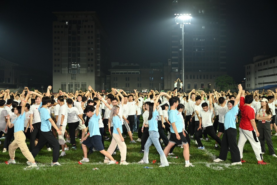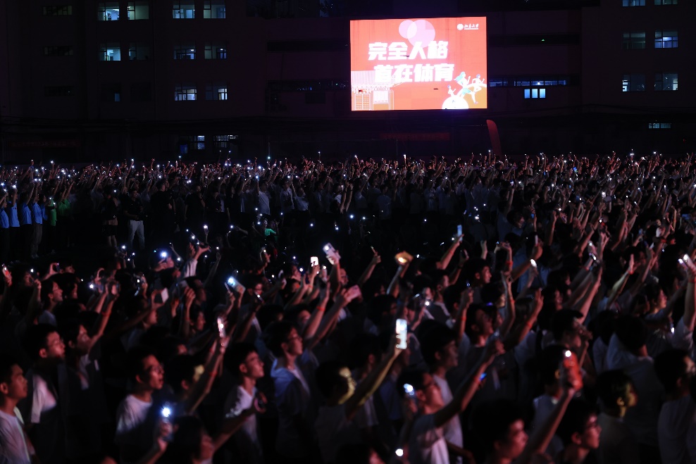活动最后,现场师生于体育场中央集合,围绕着五星红旗与“2023”图案合唱《燕园情》。歌声随风飞扬,灯光汇聚成海,在“强国有我,青春有为”的口号声中,北京大学2023年“开学第一跑”活动圆满结束。