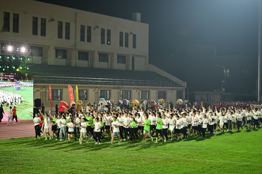 从快走到慢跑,方阵跑动的速度逐渐加快,现场气氛热烈而有序。在主席台下的跑道外侧,各院系的吉祥物为经过的师生加油鼓劲、呐喊助威。同学们精神饱满、热情高涨,挥洒着青春的汗水,展现出昂扬的风采。