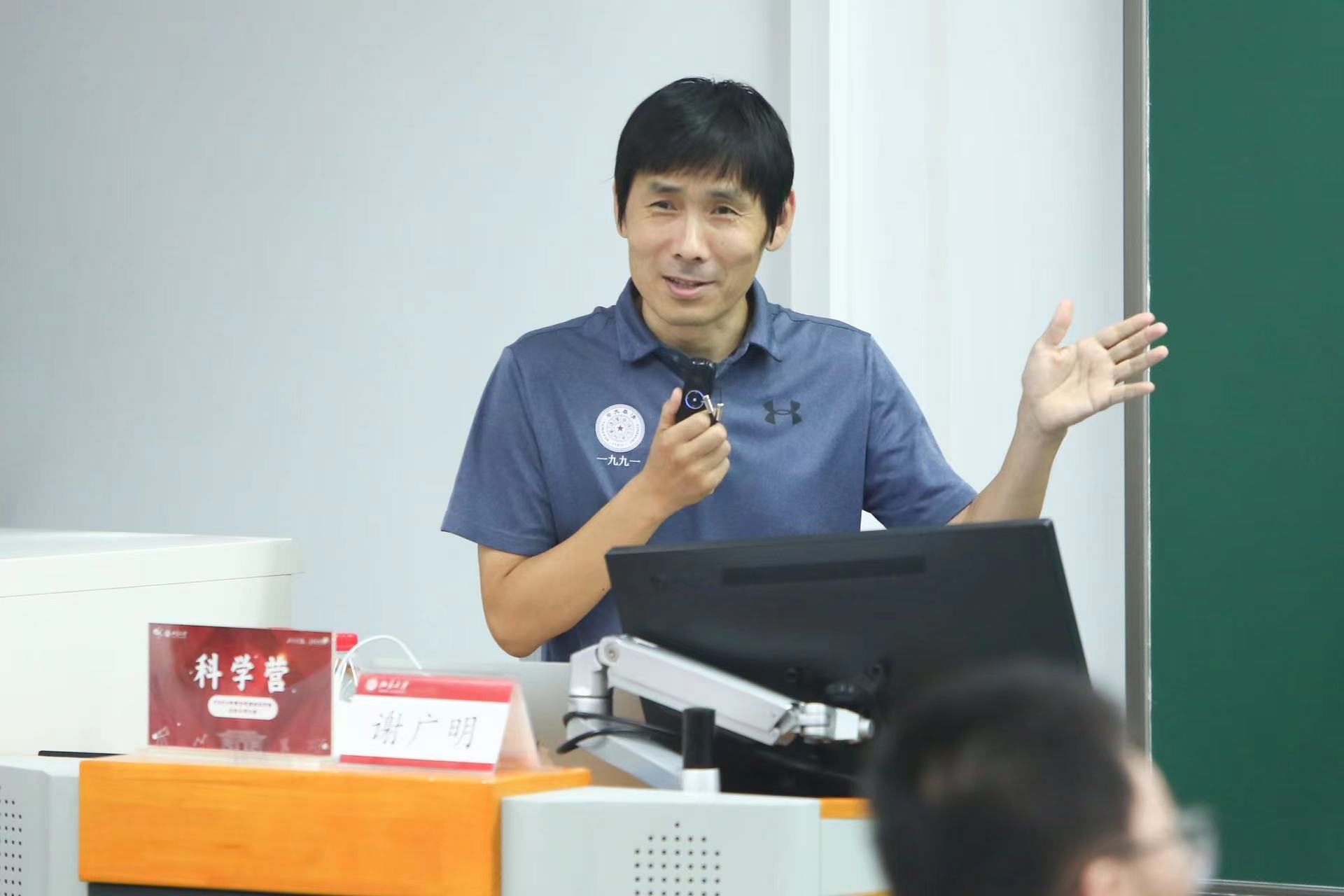 谢广明在教学改革上“与时俱进,勇于尝新”,开设工学院首门在线开放课程“魅力机器人”入选国家首批一流线上课程,被多个高校采用作为专业导论课,向清华等多所高校学生开放。谢广明指导学生积极参加国内国际多项创新创业大赛,取得优异成绩。谢广明还积极投身青少年科普工作,通过演讲、实践等促进青少年认识机器人喜欢机器人。