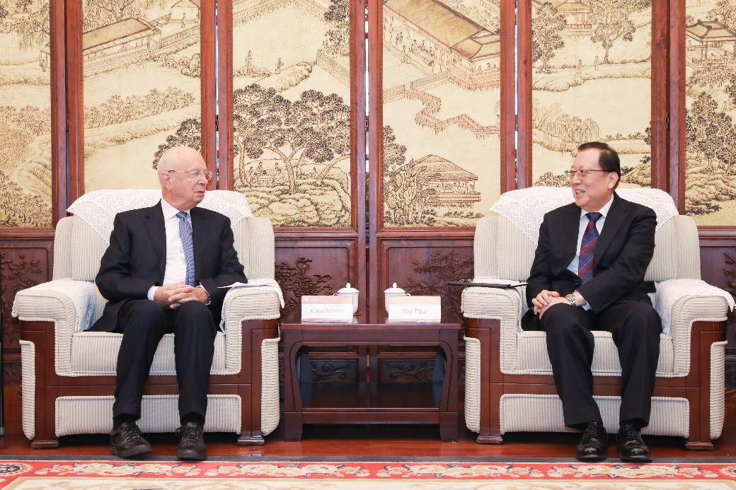 郝平向施瓦布表达亲切问候,并表示,近年来,北京大学与达沃斯世界经济论坛合作密切。2016年至今,北京大学已有近60位学者以不同形式深度参与世界经济论坛,包括达沃斯年会、夏季年会、全球大学领导者论坛、地区论坛、专题分论坛等。北京大学愿全面增进与世界经济论坛的合作与交流,深入拓展人工智能等前沿领域的学术交流。