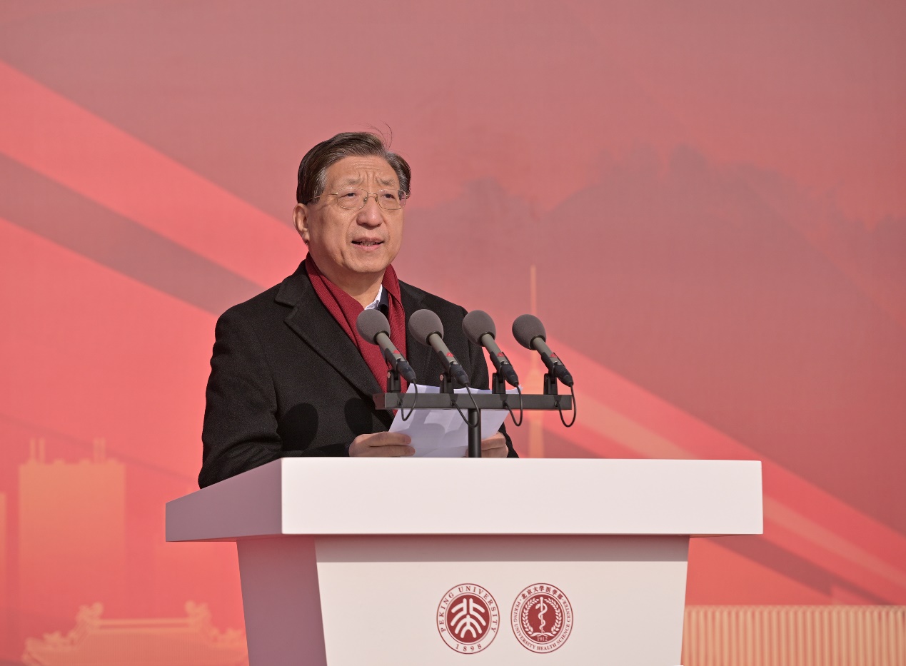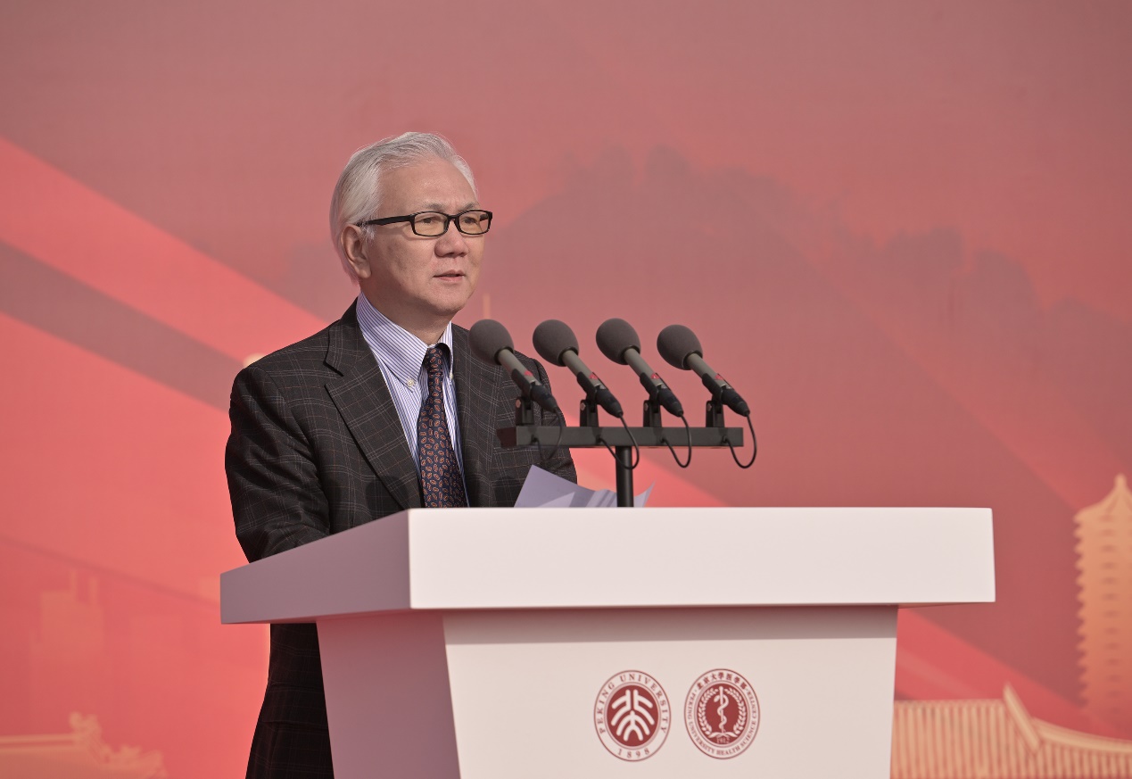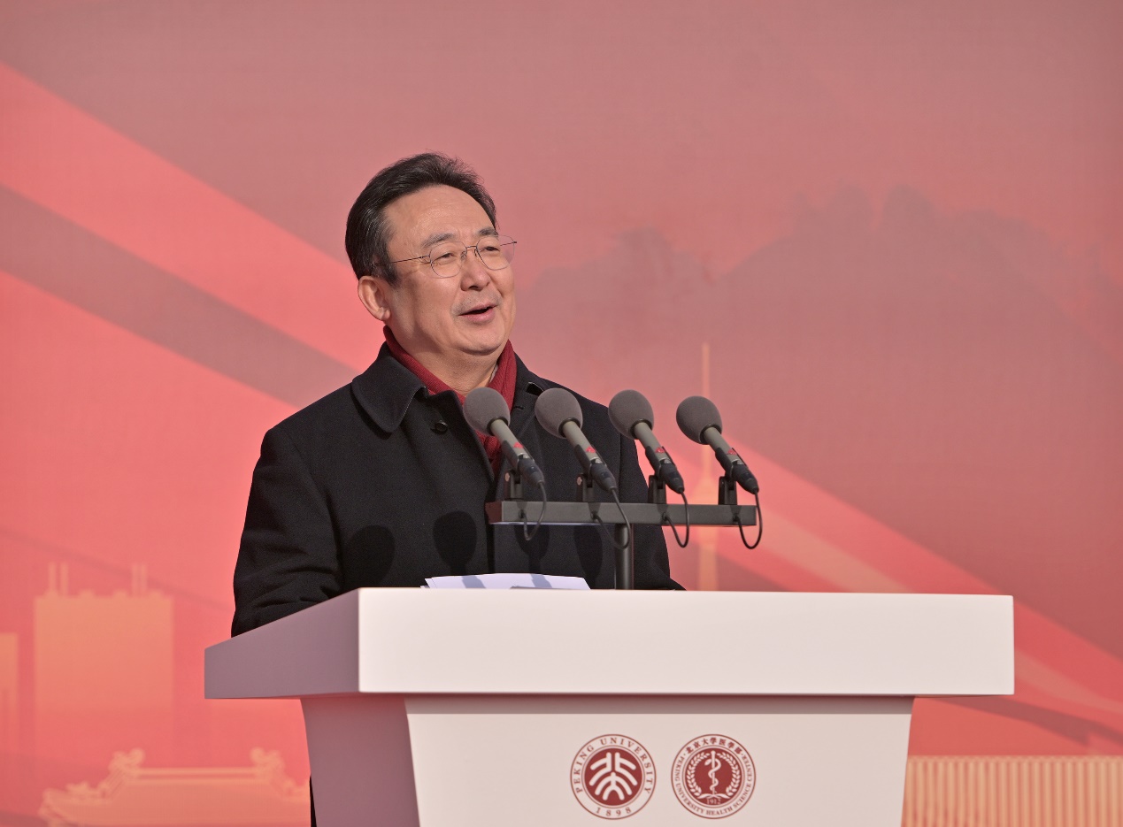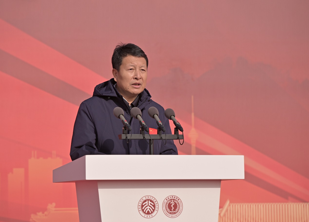 绿水环抱,群山拥簇,北京大学怀密医学中心在这个阳光明媚的冬日,开启了高水平建设、高质量发展的“北大速度”。第十、十一届全国人大常委会副委员长、第十二届全国政协副主席、中国科协名誉主席、中国科学院院士韩启德,国家卫生健康委党组副书记、副主任、中国科学院院士曾益新,教育部党组成员、副部长孙尧,北京市委常委、常务副市长夏林茂,宁夏回族自治区党委常委、常务副主席陈春平,北京大学党委常委、常务副校长、医学部主任、中国工程院院士乔杰,密云区委书记余卫国,密云区区长马新明,北京大学党委常委、副校长王博,北京大学原常务副校长、医学部原常务副主任柯杨,北京大学原党委副书记、医学部原党委书记敖英芳,中国科学院院士、北京大学国家生物医学成像科学中心主任程和平,中国科学院院士、北京大学第六医院院长陆林,中国工程院院士、北京大学人民医院院长王俊,中国工程院院士、药学院教授张强等领导嘉宾,来自国家部委、北京市、密云区、北京大学相关负责同志,北京大学专家学者代表、名誉校董代表、师生代表、参建企业代表,以及长期关心、支持北京大学发展建设的各界人士共同见证这一激动人心的时刻。仪式由北京大学党委常务副书记、组织部部长、医学部党委书记陈宝剑主持。
